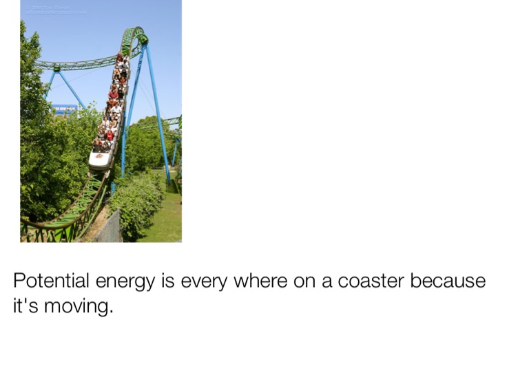 Potential energy is every where on a coaster because it's moving.