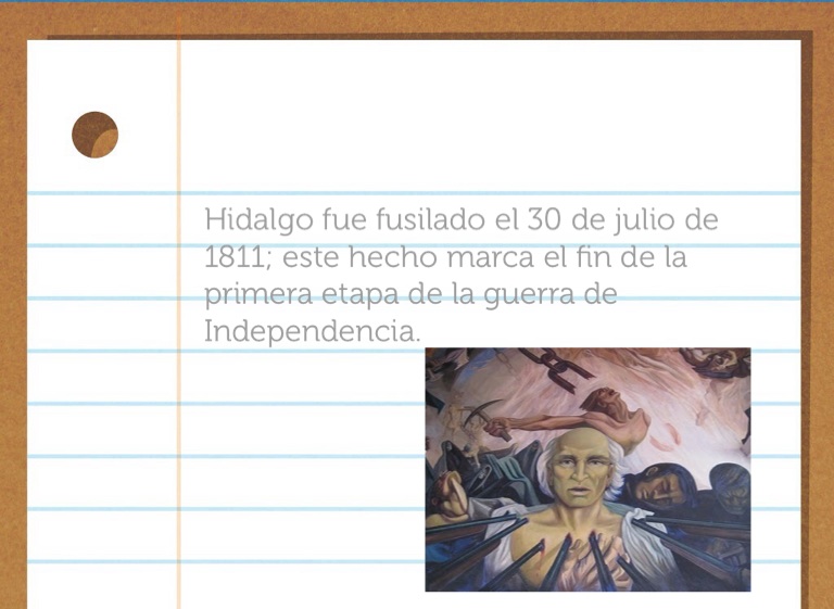 Hidalgo fue fusilado el 30 de julio de 1811; este hecho marca el fin de la primera etapa de la guerra de Independencia.