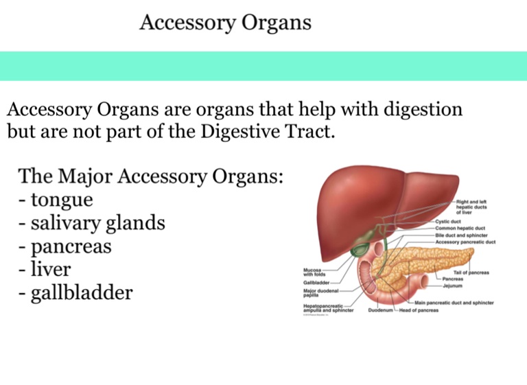 Accessory Organs are organs that help with digestion but are not part of the Digestive Tract.