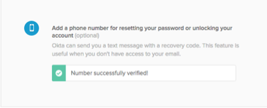 If you choose to add your cell phone number, you will be sent a verification number and will see this once you have successfully verified your phone: