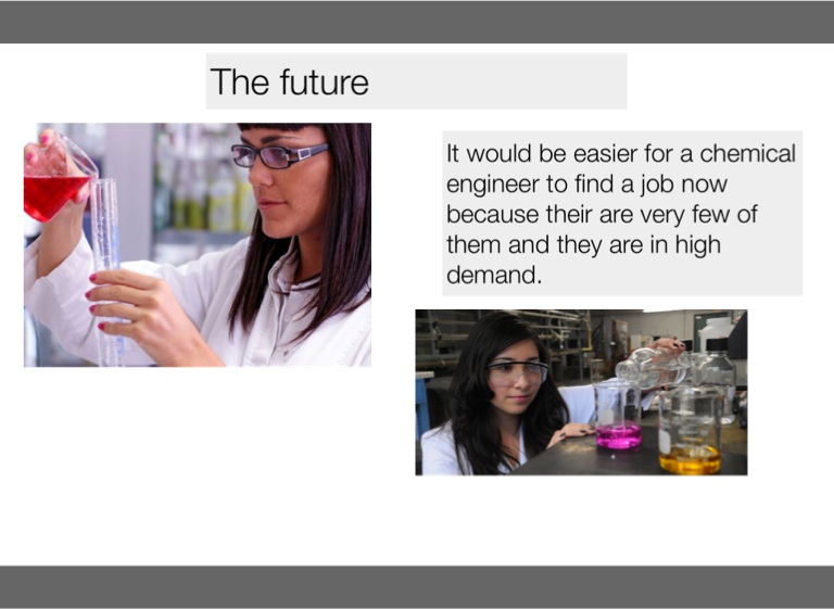 It would be easier for a chemical engineer to find a job now because their are very few of them and they are in high demand.