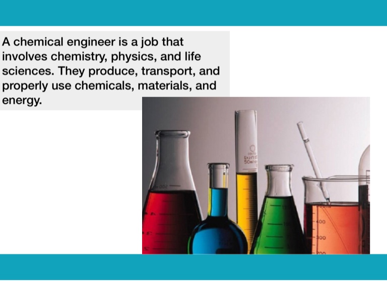 A chemical engineer is a job that involves chemistry, physics, and life sciences. They produce, transport, and properly use chemicals, materials, and energy.