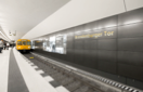 Der Wände der U-Bahn-Station wurden hinter den Gleisen mit einer hochwertigen Flachtafelfassade verkleidet. Die Bauteile bestehen aus 4-mm-Aluminiumblechen mit spezieller Pulverbeschichtung und zusätzlichem Antigraffitischutz. Die Wandverkleidung wurde segmentiert dem Kurvenverlauf der Fahrstrecke angepasst, Bahnhofsname und Leuchttafeln wurden in die Verkleidung integriert.