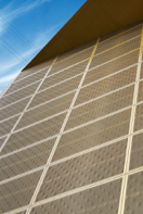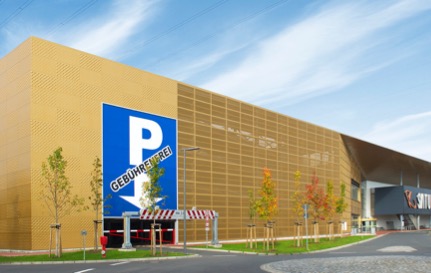 Goldfarbene Aluminiumbleche für die Fassade des 50.000 Quadratmeter großen Einkaufszentrums sorgen für spektakuläre Lichtreflexionen nicht nur tagsüber, sondern dank integrierter Beleuchtung auch am Abend. Der beeindruckende Effekt wurde mit modernster Tiefziehtechnik erzielt; die Technologie ermöglicht es, unter Hochdruck unterschiedlichste Strukturen in die Bleche zu formen. Die Oberflächen der Fassadenelemente wurden mit einer widerstandsfähigen Premiumbeschichtung gegen äußere Witterungsverhältnisse versehen, bei der Glanzerhaltung und Farbechtheit für lange Zeit sichergestellt sind.