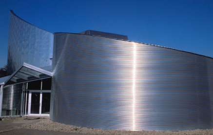 Ronge Metallbau war mit der Bekleidung sämtlicher Wandflächen und der Dachabdichtung beauftragt. Zum Leistungsumfang gehörten die gesamten Eindeckungen und Bekleidungen mit Metallprofilen sowie der Überbau der Pumpenhalle, das Vordach, die Wandbekleidung des Segels und die Wandbekleidung des Behälters.