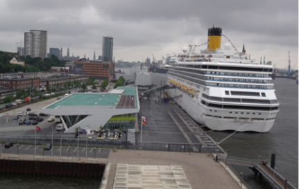 Begehbares Dach und stilvolle Fassade: Das Cruise Center Altona ist nur nicht Landeplatz für Luxusliner, sondern gehört auch zu den gesuchtesten Locations Hamburgs für exklusive Events. Ronge Metallbau realisierte die vorgehängte hinterlüftete Fassade aus metallisch-silbernen Alucobond-Elementen – insgesamt rund 3.600 Quadratmeter Fläche – unter Maßgabe eines ambitionierten Bauablaufs. Die Verbundplatten wurden auf eine justierbare Aluminiumunterkonstruktion aus eigener Herstellung montiert.