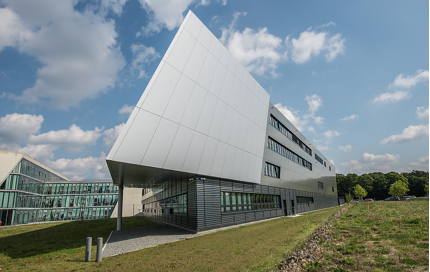 Er wirkt wie eine futuristische Yacht auf grüner Wiese: Der Open Hybrid LabFactory LeichtbauCampus, ein Projekt der Volkswagen Immobilien GmbH in Zusammenarbeit mit der Technischen Universität Braunschweig. Hier werden seit September 2016 innovative Schlüsseltechnologien für den Fahrzeugbau der Zukunft entwickelt.