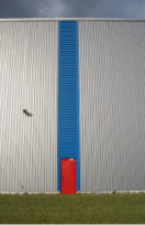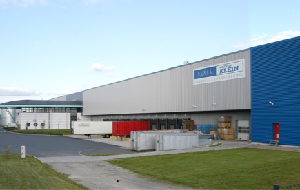 Dach- und Wandverkleidungen der Logistikhalle und des Bürogebäudes wurden innerhalb von nur zwölf Wochen fertiggestellt. Das zweischalige System für die Wandverkleidung der Hallen besteht aus Stahlkassettenprofilen mit einer Außenschale aus senkrechten und waagerechten Trapezprofilen. Die Stahltrapezprofile für die Dacheindeckung des Bürotraktes mussten in zwei Richtungen der gerundeten Tragkonstruktion angepasst werden. Die Untersichtsverkleidung des Bürodachs besteht aus gekanteten Stahlpaneelen, die vor Ort konisch dem Fugenverlauf angeglichen wurden.