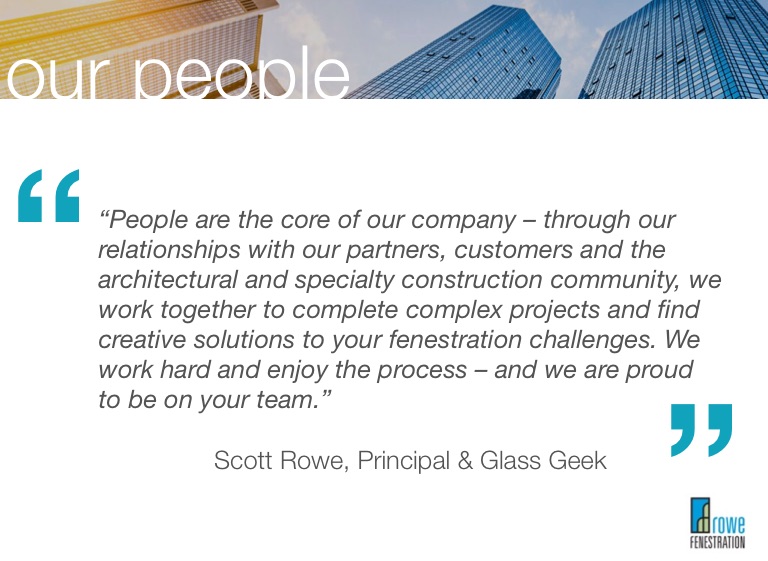 “People are the core of our company – through our relationships with our partners, customers and the architectural and specialty construction community, we work together to complete complex projects and find creative solutions to your fenestration challenges. We work hard and enjoy the process – and we are proud to be on your team.”