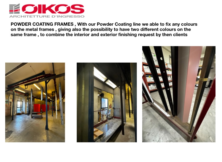 POWDER COATING FRAMES , With our Powder Coating line we able to fix any colours on the metal frames , giving also the possibility to have two different colours on the same frame , to combine the interior and exterior finishing request by then clients