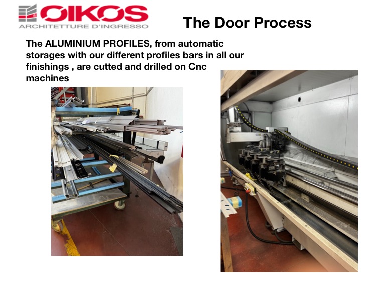 The ALUMINIUM PROFILES, from automatic storages with our different profiles bars in all our finishings , are cutted and drilled on Cnc machines