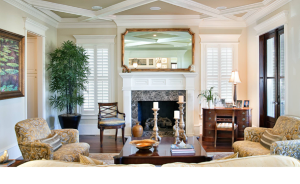 This example, at a quick glance, almost fully resembles a formally symmetrical room, but I chose this example because I wanted to show the fact that only few subtle changes can alter the ultimate feeling and formalness of the room. Here the room is balanced because of the placing of the objects equally on each side (left vs right) but the room is asymmetrical in the fact that there is a plant on one side and a desk on the other. There are other examples in the room such as the vase by the fireplace that give the room a sense of relaxation and comfort. The room is overall, balanced, but not formally symmetrical.