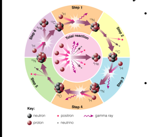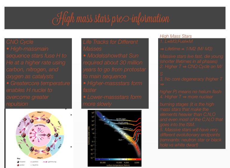 • High-massmain sequence stars fuse H to He at a higher rate using carbon, nitrogen, and oxygen as catalysts