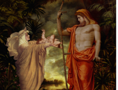 Zeus was the sixth child born to Cronus and Rhea because Cronus, ruler of the Titans and the supreme god at the time, was afraid that one of his children would overthrow him, just like he overthrew his father, Uranus, he swallowed his first five children - Poseidon, Hades, Hera, Demeter and Hestia. This, of course, infuriated Rhea and when Zeus was born she tricked Cronus into swallowing a rock wrapped in blankets.