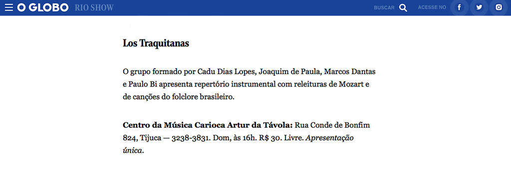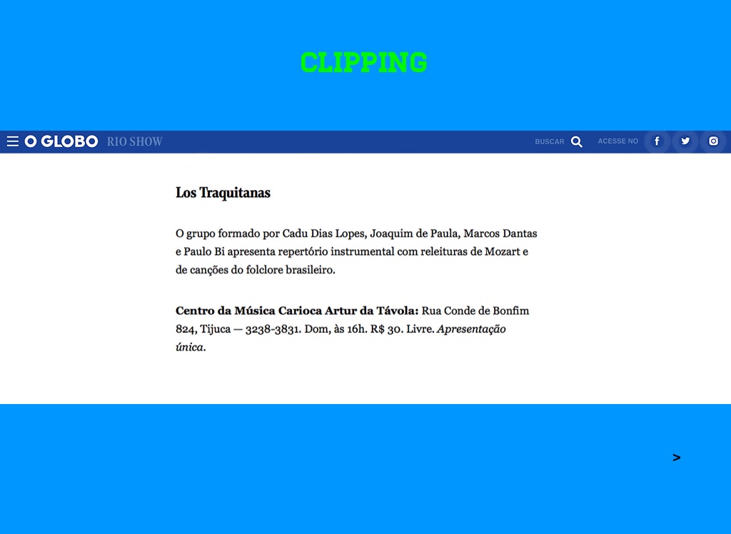 O trio formado por Joaquim de Paula, Marcos Dantas e Paulo Bi, faz uso de várias traquitanas sonoras, para apresentar ao público infantil divertidas experiências e brincadeiras musicais.