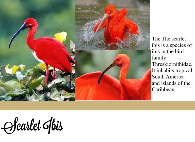 The The scarlet ibis is a species of ibis in the bird family Threskiornithidae. It inhabits tropical South America and islands of the Caribbean.