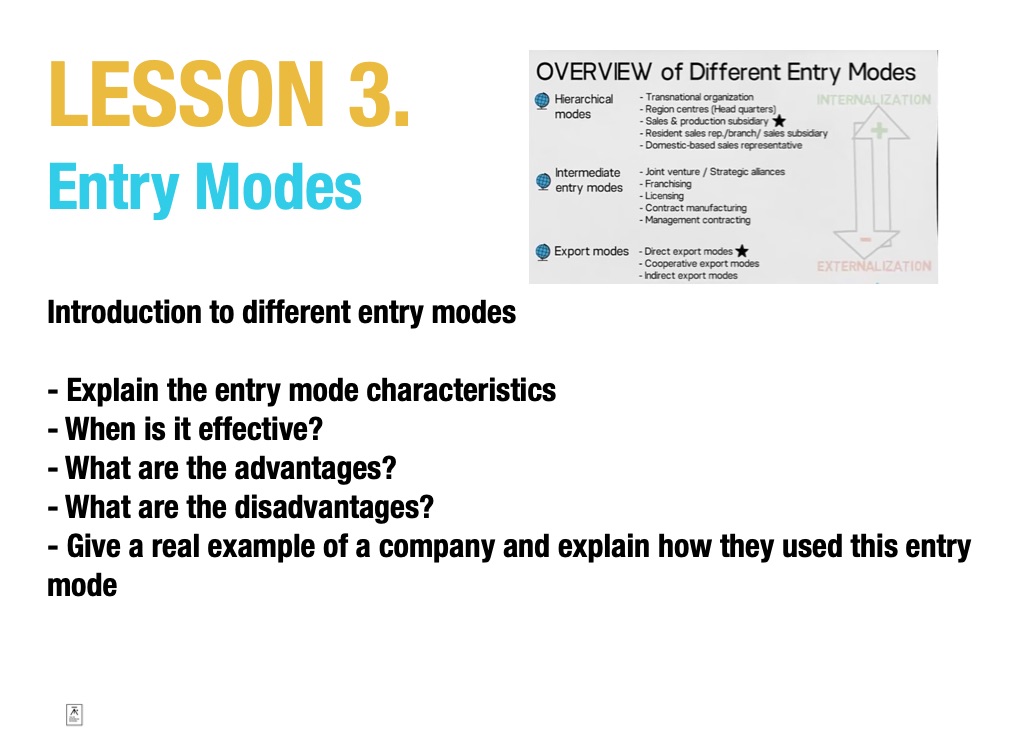 - Give a real example of a company and explain how they used this entry mode