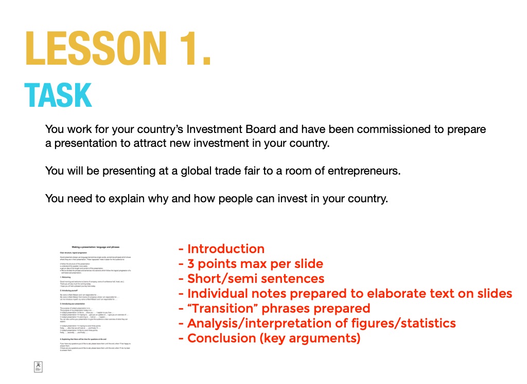 You work for your country’s Investment Board and have been commissioned to prepare a presentation to attract new investment in your country.