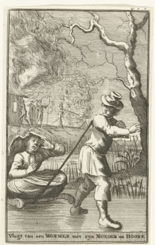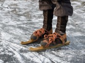Hier zie je Lambert Melisz. Hij redde zijn moeder toen Westzaan door de Spanjaarden in brand werd gestoken. Hij zette haar op een kaasberry en schaatste helemaal naar Hoorn. Onderweg werden ze door een paar Spanjaarden tegengehouden. Het zag er slecht voor ze uit. Maar de Spanjaarden kregen medelijden met het oude vrouwtje en haar zoon. Zo konden ze ontsnappen en kwamen ze veilig in Hoorn aan.