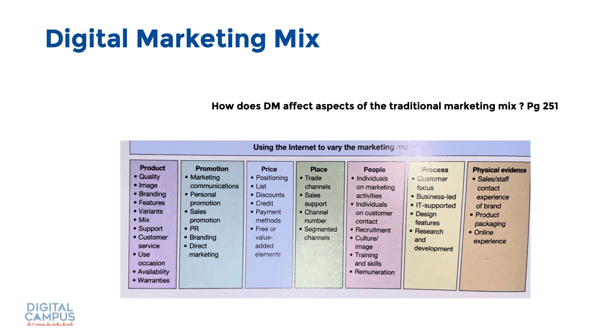 How does DM affect aspects of the traditional marketing mix ? Pg 251