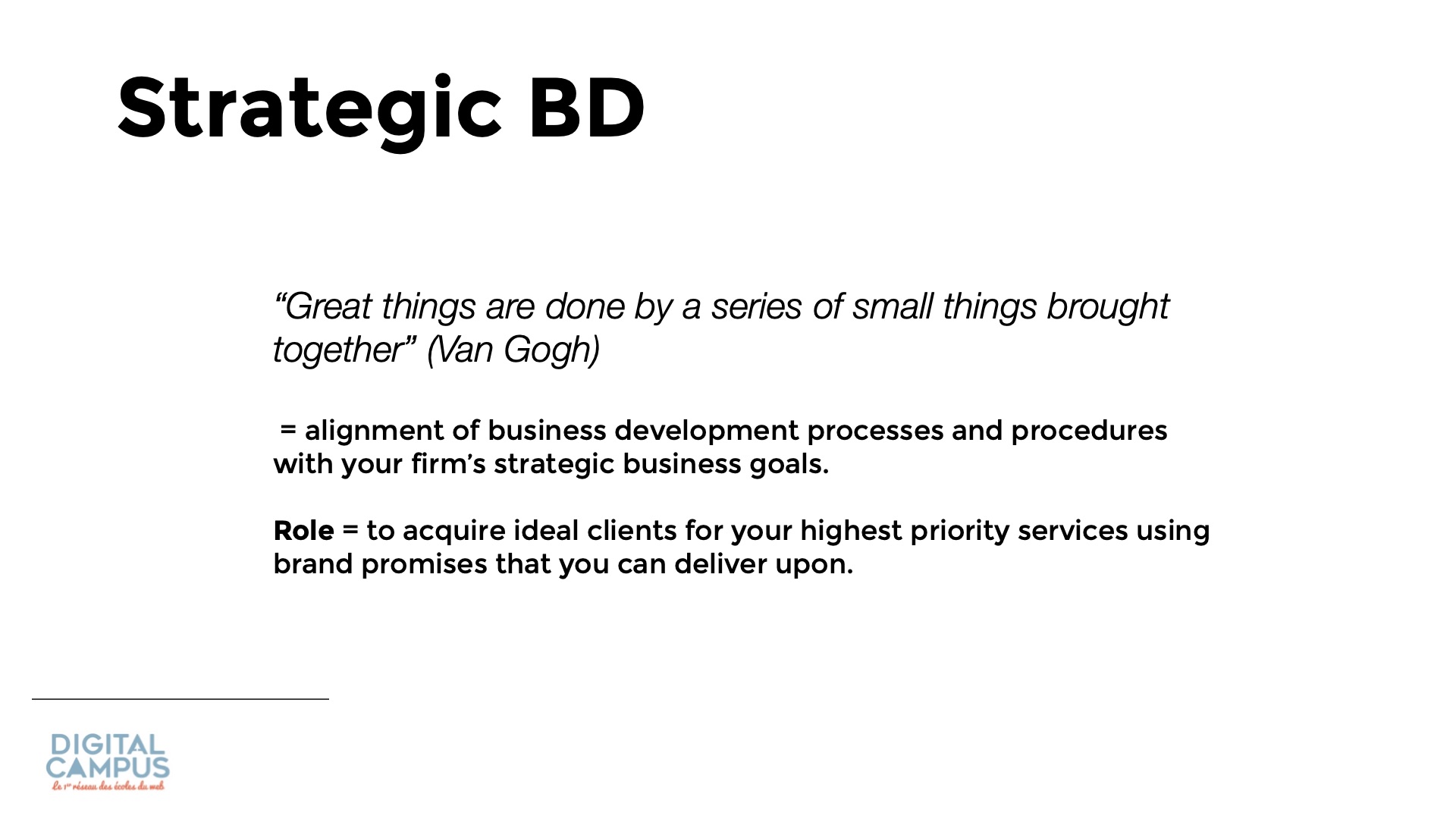 = alignment of business development processes and procedures with your firm’s strategic business goals.