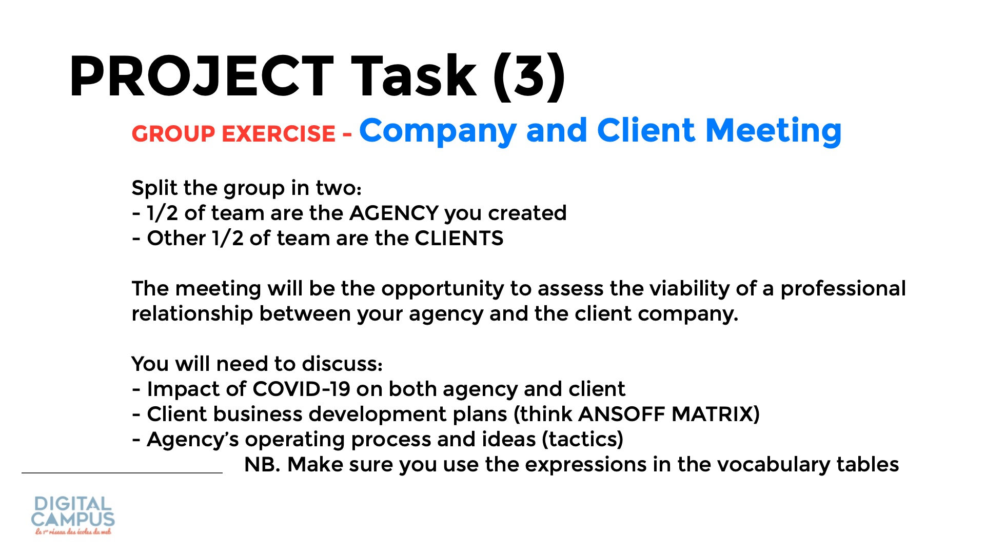 GROUP EXERCISE - Company and Client Meeting