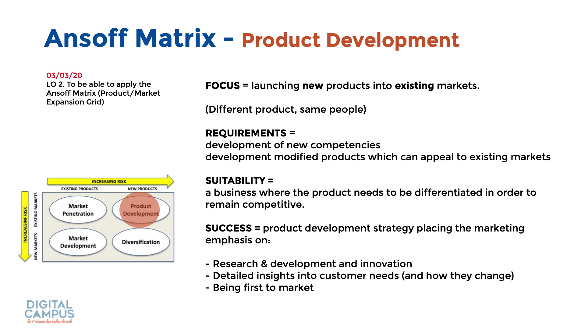 LO 2. To be able to apply the Ansoff Matrix (Product/Market Expansion Grid)