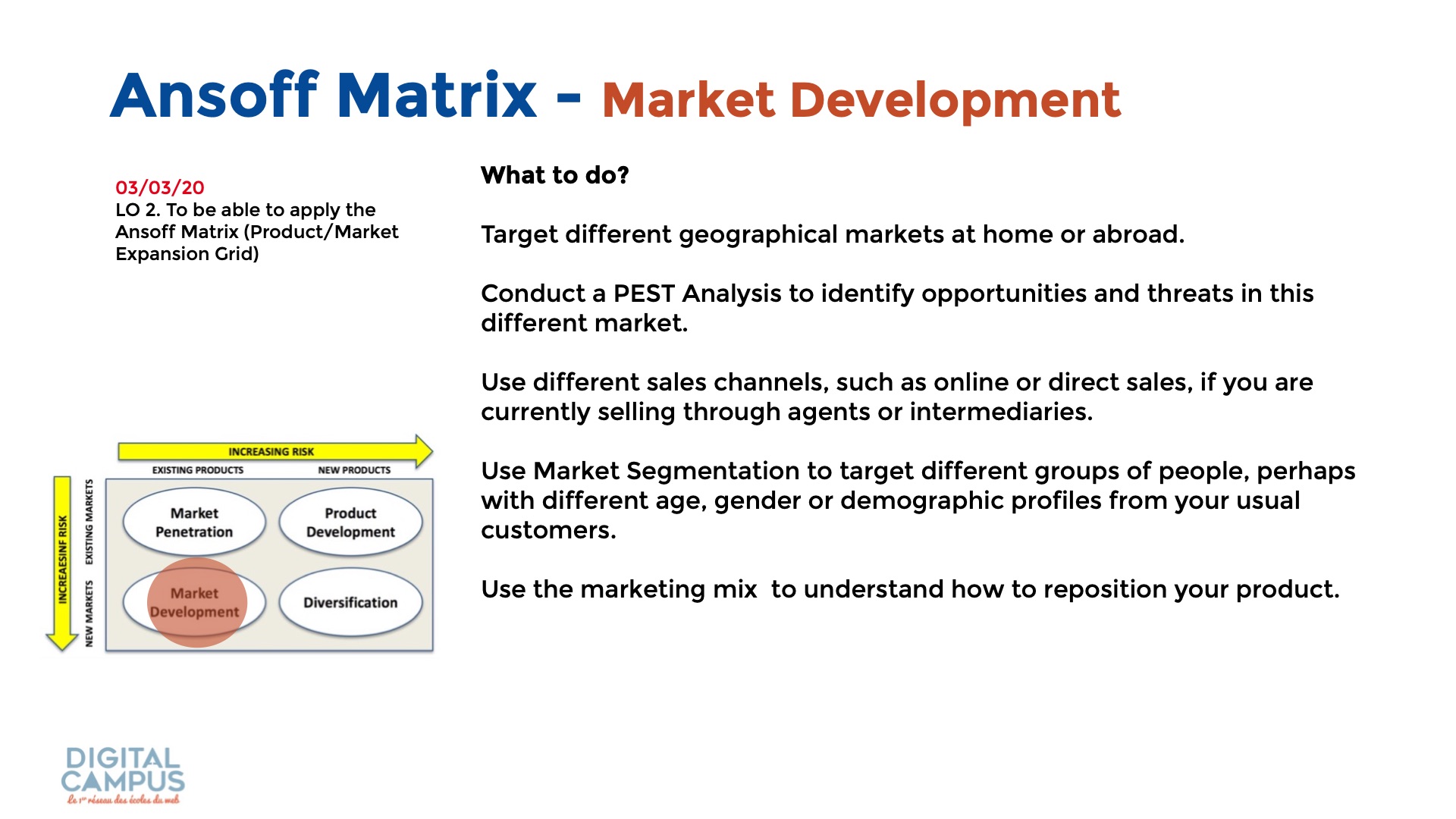 Ansoff Matrix - Market Development
