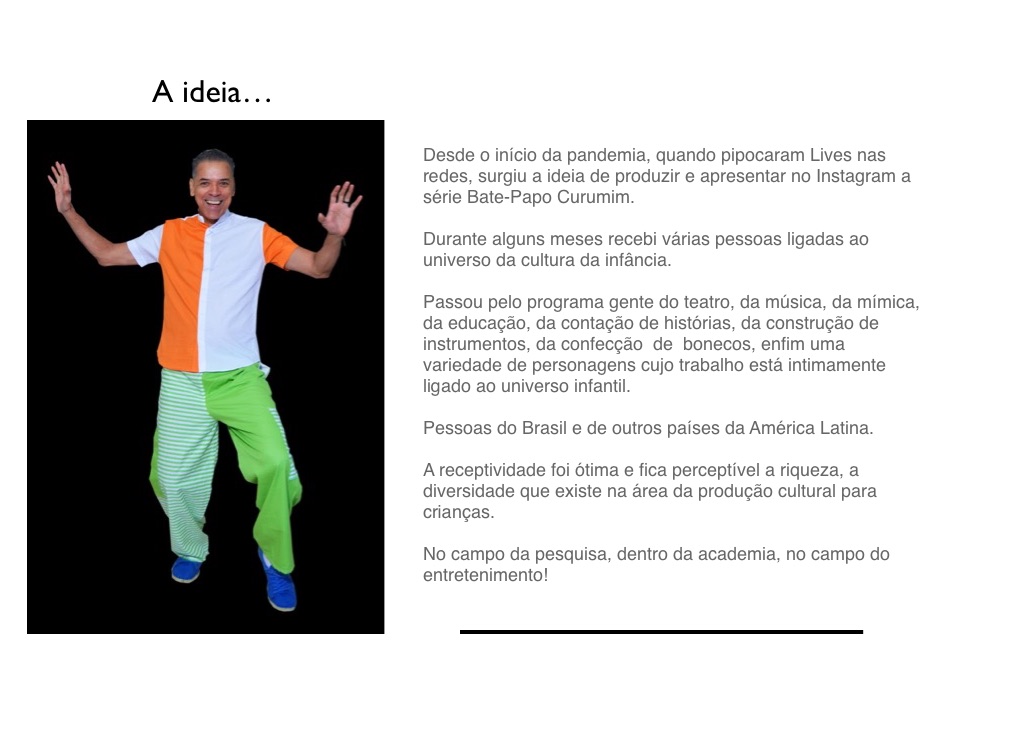 Desde o início da pandemia, quando pipocaram Lives nas redes, surgiu a ideia de produzir e apresentar no Instagram a série Bate-Papo Curumim.