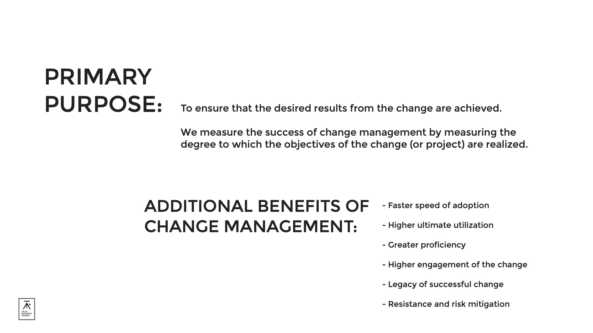 ADDITIONAL BENEFITS OF CHANGE MANAGEMENT: