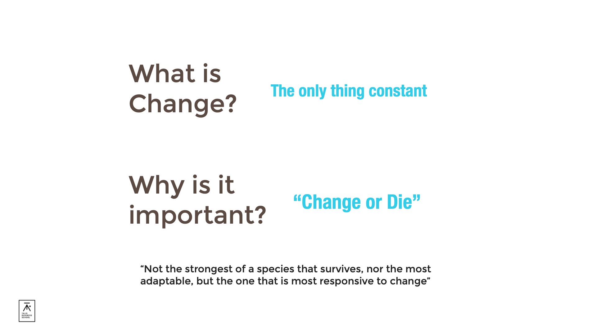 “Not the strongest of a species that survives, nor the most adaptable, but the one that is most responsive to change”