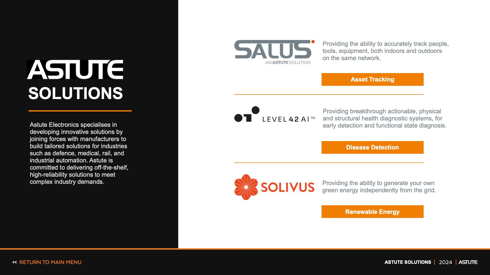 Astute Electronics specialises in developing innovative solutions by joining forces with manufacturers to build tailored solutions for industries such as defence, medical, rail, and industrial automation. Astute is committed to delivering off-the-shelf, high-reliability solutions to meet complex industry demands.
