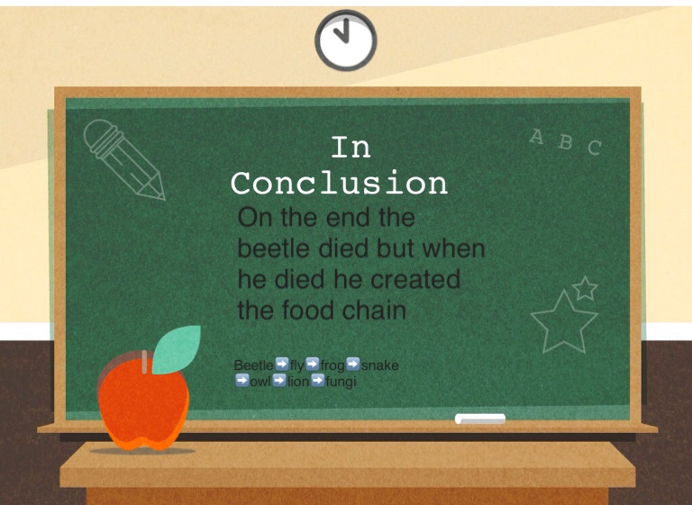 On the end the beetle died but when he died he created the food chain