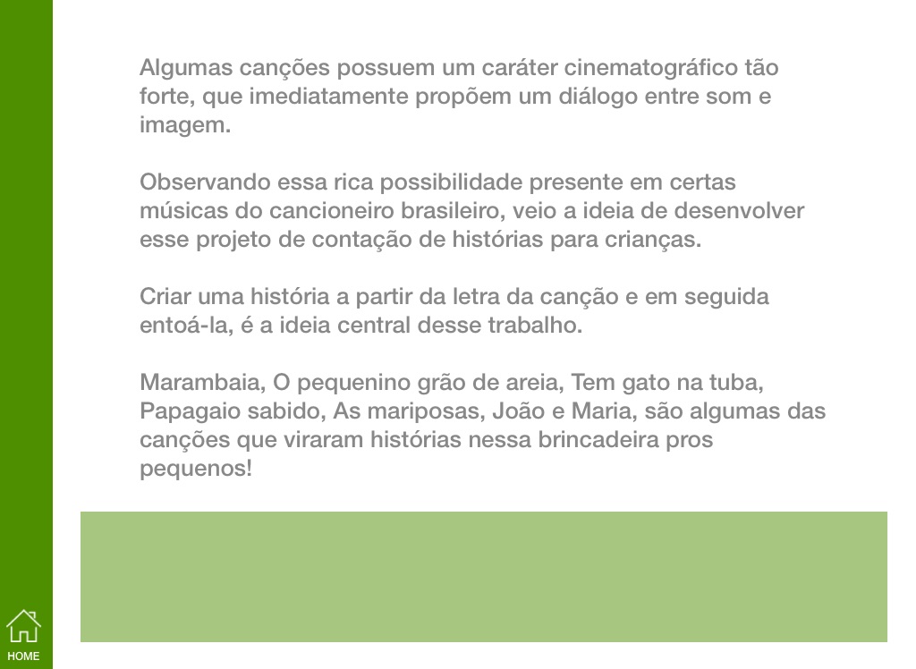 Observando essa rica possibilidade presente em certas músicas do cancioneiro brasileiro, veio a ideia de desenvolver esse projeto de contação de histórias para crianças.