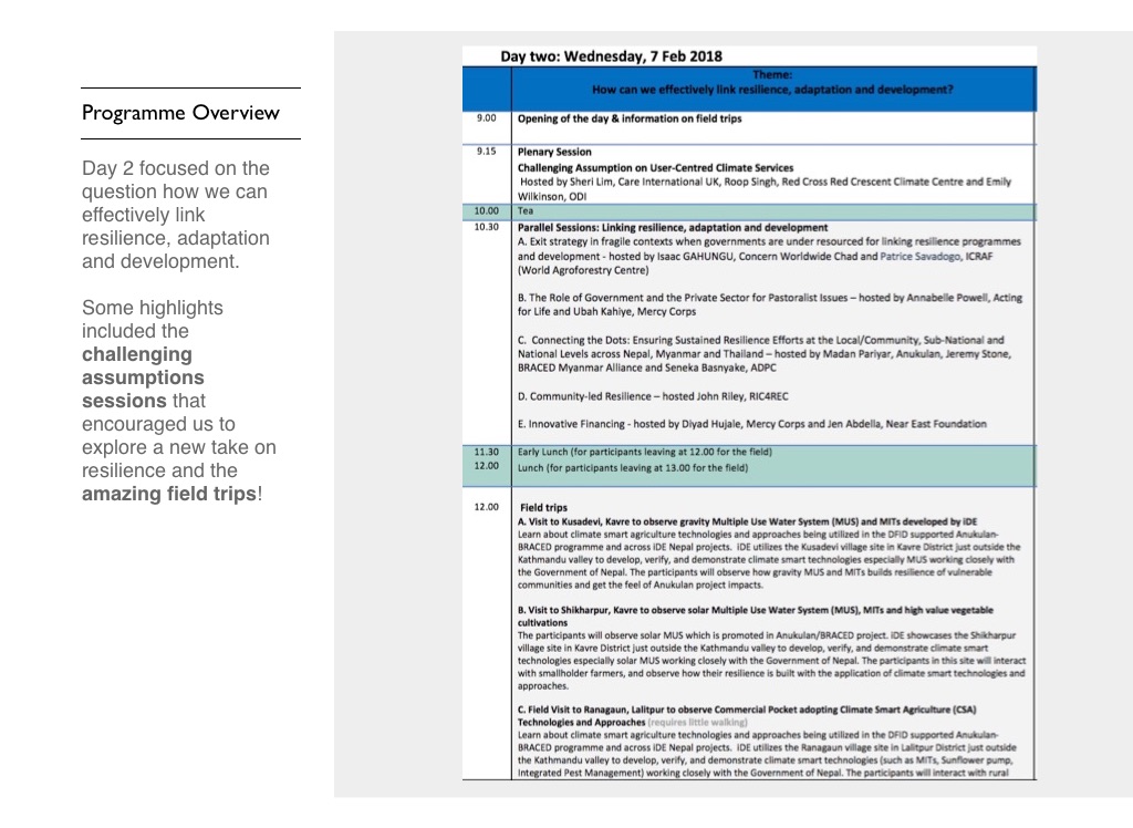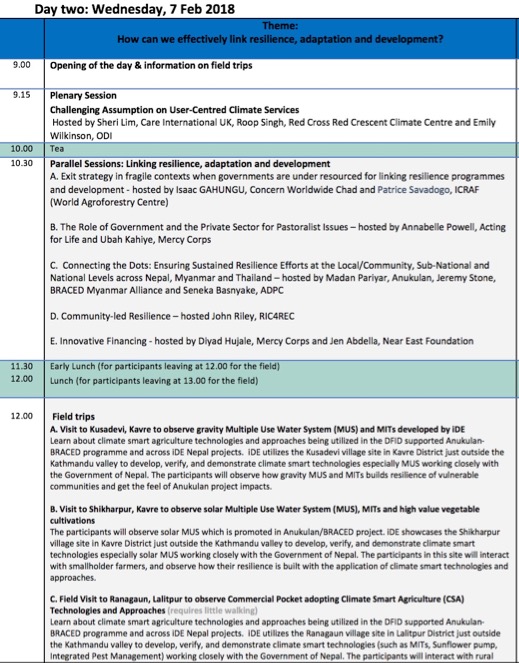 Day 2 focused on the question how we can effectively link resilience, adaptation and development.