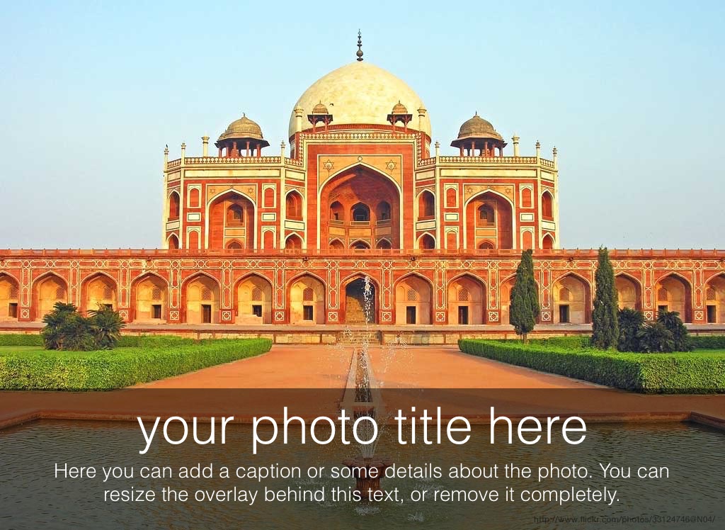 Here you can add a caption or some details about the photo. You can resize the overlay behind this text, or remove it completely.