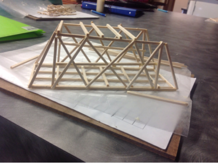 Added to the bridge are 4 (soon to be 5) sticks laying across the top.