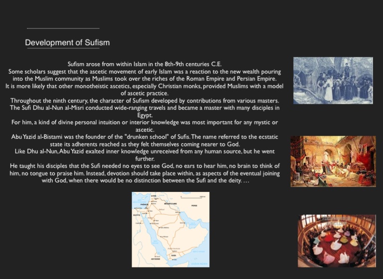 Throughout the ninth century, the character of Sufism developed by contributions from various masters.