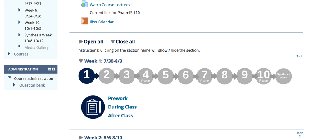 “OPEN ALL” WILL EXPAND ALL COURSE ASSIGNMENTS, QUIZZES AND LECTURES