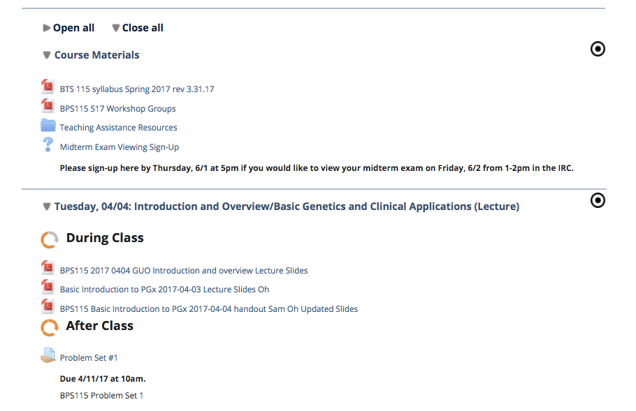 SCROLL DOWN TO THE DATE YOU ARE INTERESTED IN FOR COURSE ASSIGNMENTS SPECIFIC TO THAT DATE