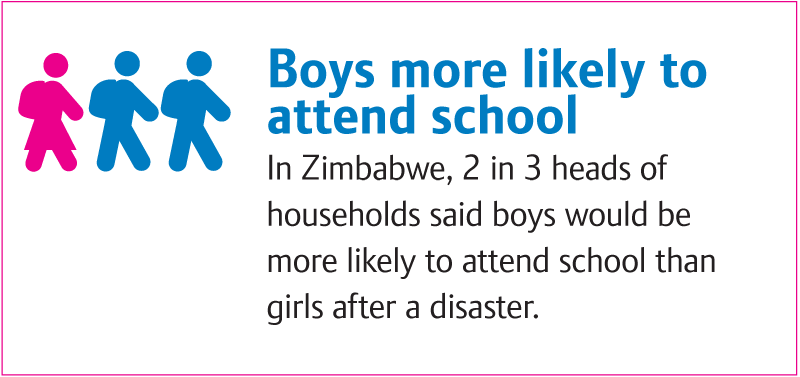• Schools may act as a place where girls receive life-saving messages such as how to access health care and food in an emergency.