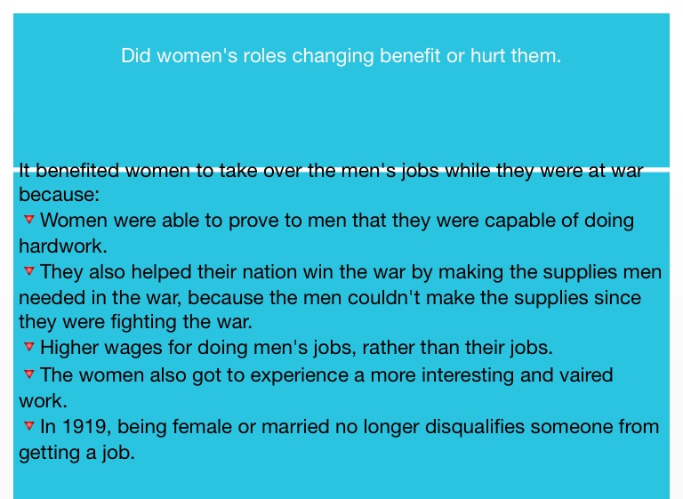 🔻They also helped their nation win the war by making the supplies men needed in the war, because the men couldn't make the supplies since they were fighting the war.
