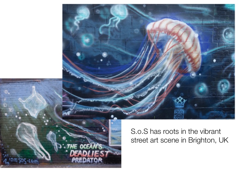 S.o.S has roots in the vibrant street art scene in Brighton, UK
