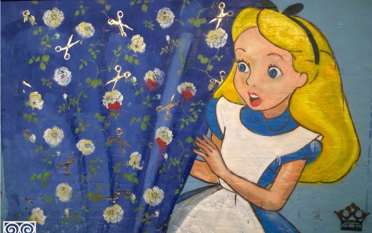 Alice against female genital mutilation created in the Banksy Tunnel raises awareness to the practice in the UK & Europe. I was invited to Austrian Parliament to discuss art for social change. click here for a film