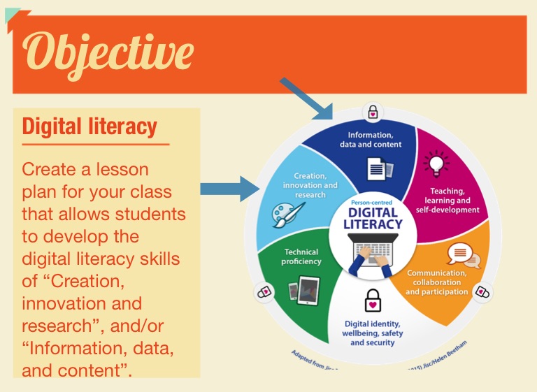 Create a lesson plan for your class that allows students to develop the digital literacy skills of “Creation, innovation and research”, and/or “Information, data, and content”.