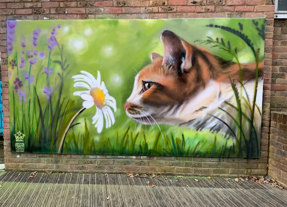 A mural created for young people in a secure environment Chalkhill NHS Trust. Young people did a workshop with me first and collaborated on the design of the mural.