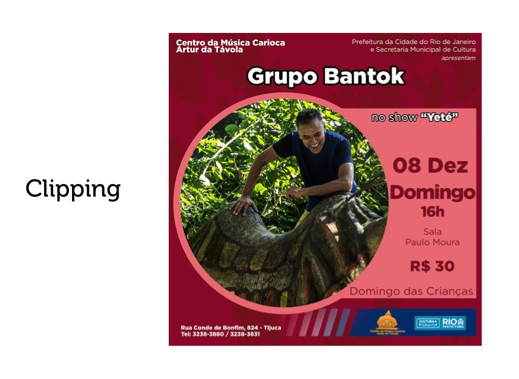 Show infantil do duo Bantok. O espetáculo surgiu a partir do EP Yeté, trabalho do compositor Paulo Bi que traz 4 canções cujo tema é a água.