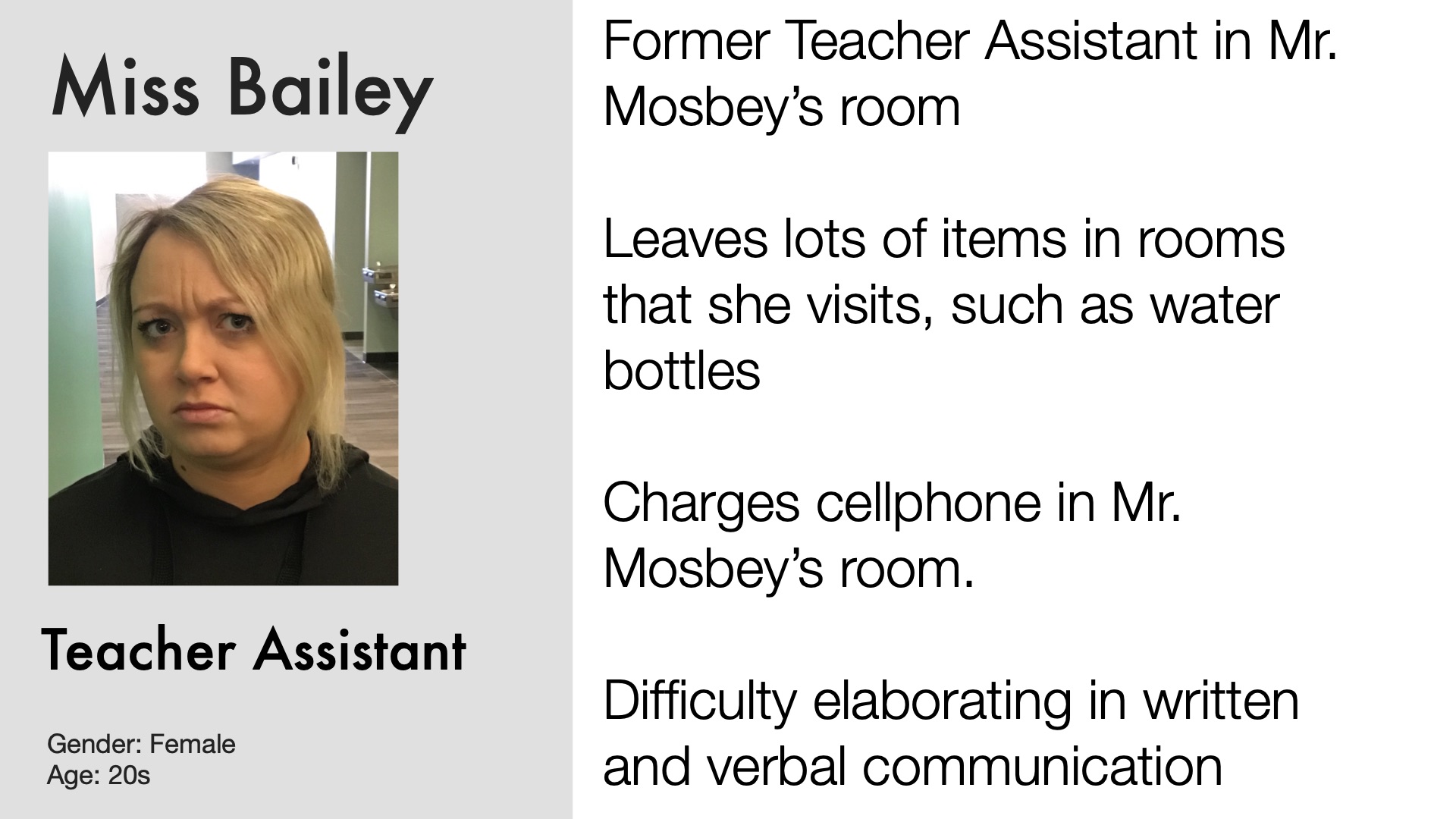 Former Teacher Assistant in Mr. Mosbey’s room