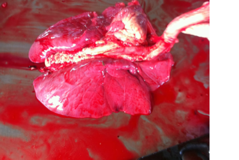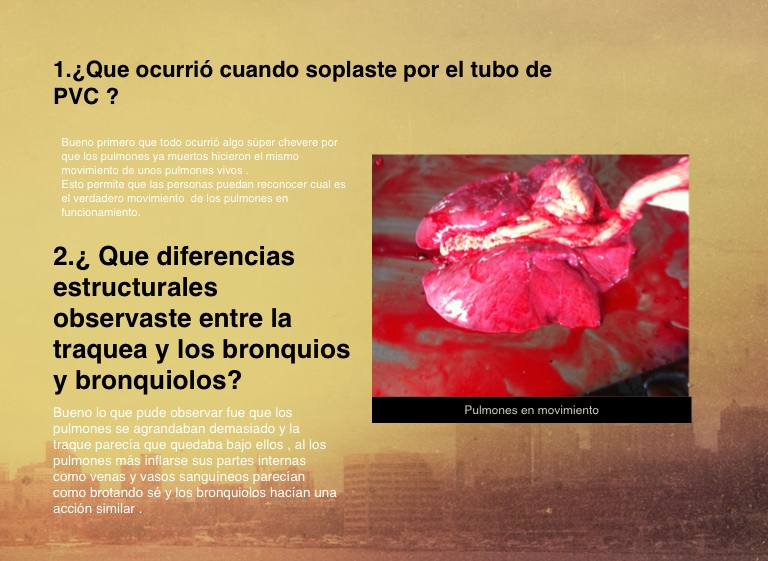 Bueno lo que pude observar fue que los pulmones se agrandaban demasiado y la traque parecía que quedaba bajo ellos , al los pulmones más inflarse sus partes internas como venas y vasos sanguíneos parecían como brotando sé y los bronquiolos hacían una acción similar .