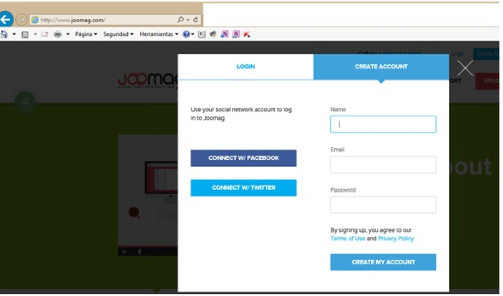 Selecciona CREATE ACCOUNT y crea una nueva cuenta dentro de la página.